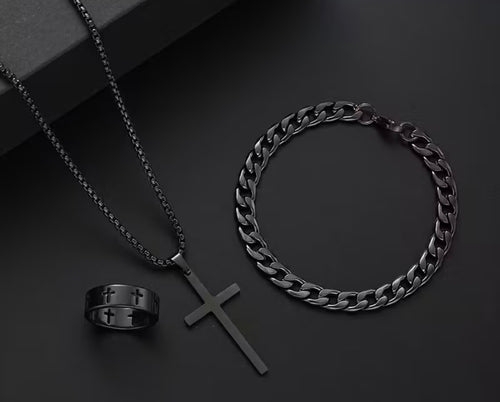 1002 - 3 Piece Mens Black Jewelry Set